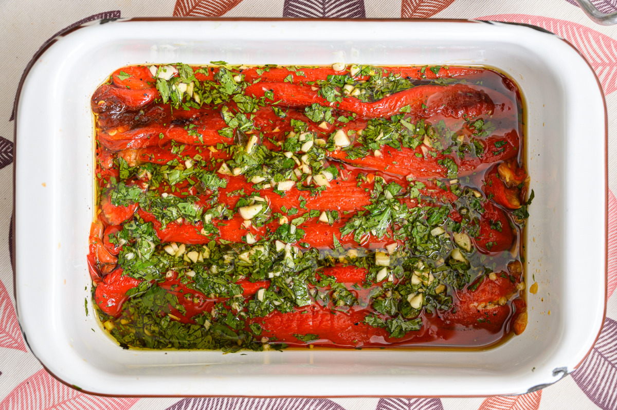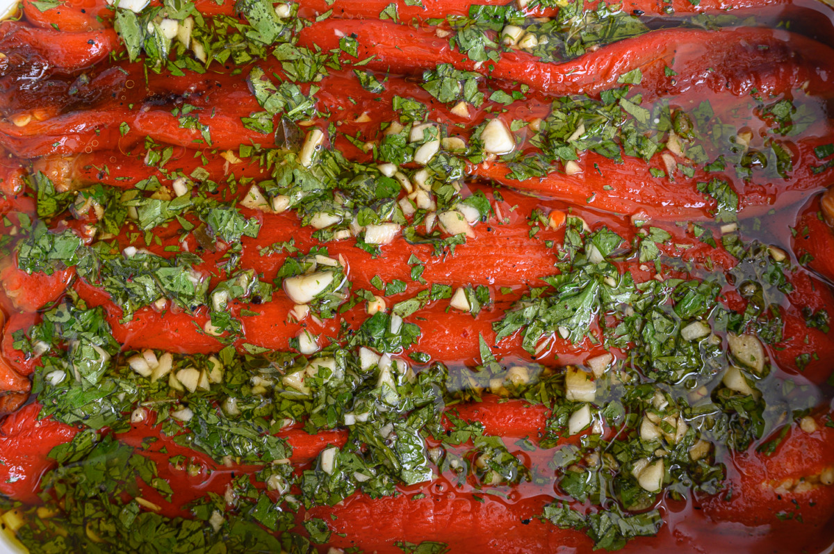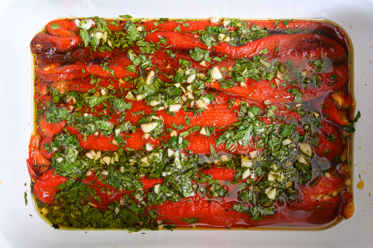על דף אפייה נכניס את הפלפלים 20 דק’ צד א’ 5 דקות צד ב’ – נצנן לחלוטין (ואז קליפת הפלפל ככ קלה להשלה)
