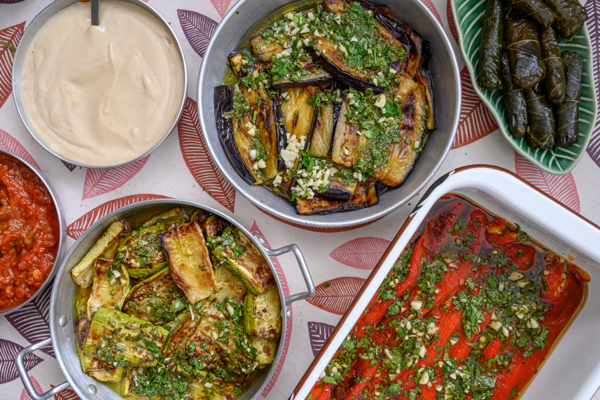 נסדר את החצילים על דף אפייה משומן בנדיבות, נזלף שמן גם ממעל – צד א’ כ-20 דקות, צד ב’ 10 דק’.